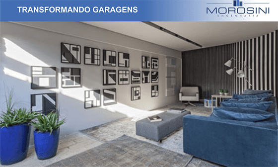Ao mudar esse tipo de ambiente, o projeto luminotécnico é trabalhado com mais carinho, e optar por utilizar elementos como tapete, quadros, adornos, móveis próprios para sala, faz com que sequer lembremos que ali, um dia, foi uma garagem. Normalmente, as garagens são amplas, então é preciso criar uma composição que deixa o espaço mais acolhedor e aconchegante como são as salas.